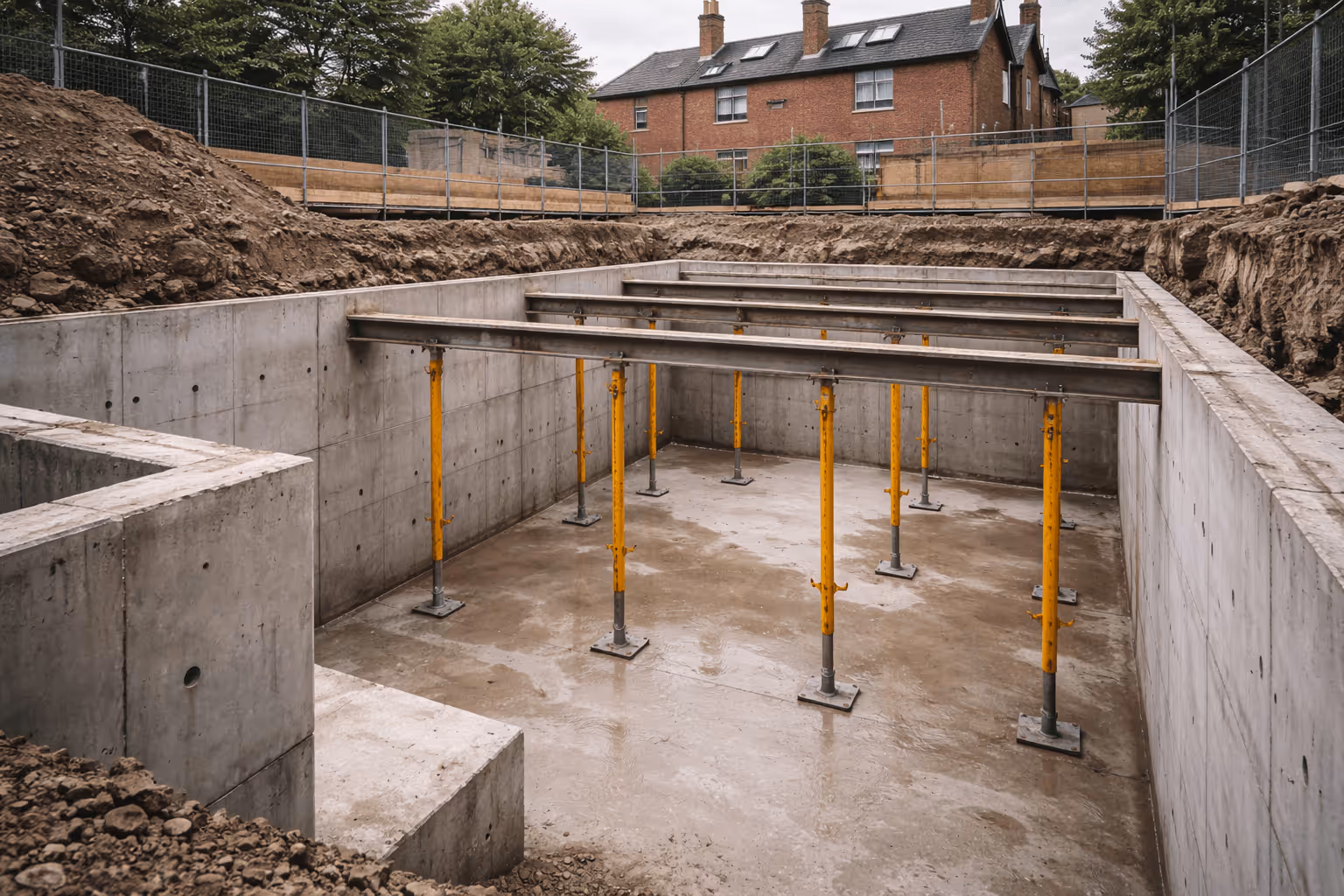 Complex basement excavations and structural underpinning carried out safely within live residential environments.